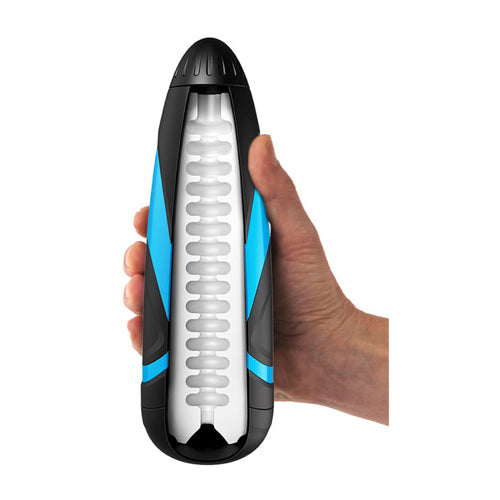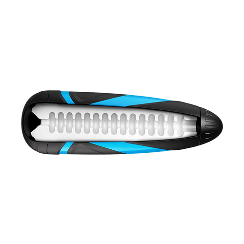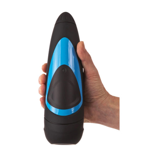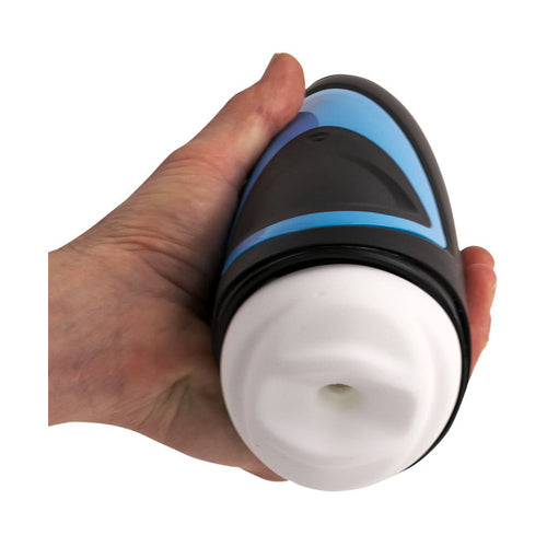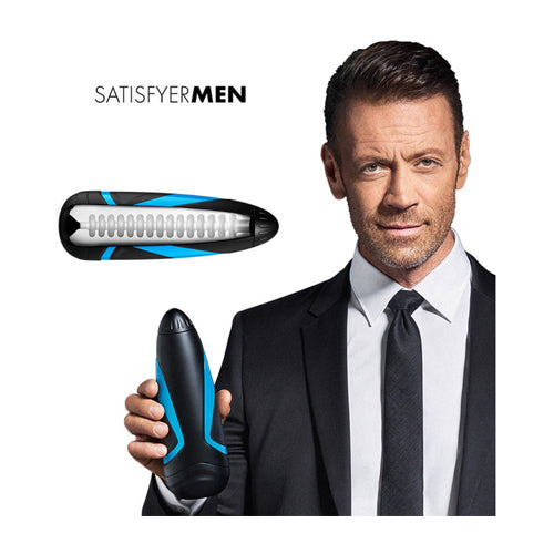 The novel pump feature allows you to add or release air during use at the touch of a button. With full control of the Satisfyer Men, you are the lord of its intensity and your desire. It gets looser, It gets tighter. To change up your stroking time you are able to buy additional textured interchangeable Satisfyer Men Sleeves that just slip in like the original and with 6 different styles you can choose a different one everyday of the week. Not only does the Satisfyer Men guarantee sensational orgasms, it also looks amazing: This orgasm miracle provider has a solid blue-black ABS plastic sheath with soft lateral parts made of silicone. This offers a surface with a firm grip, while still letting you use the pump function. Thanks to this innovative pump function, the Satisfyer Men adapts perfectly to your prize body part, massaging you unerringly towards climax. If you wish to return to the original width at any point, simply turn the tip to regulate the suction and thus the narrowness of the sleeve.