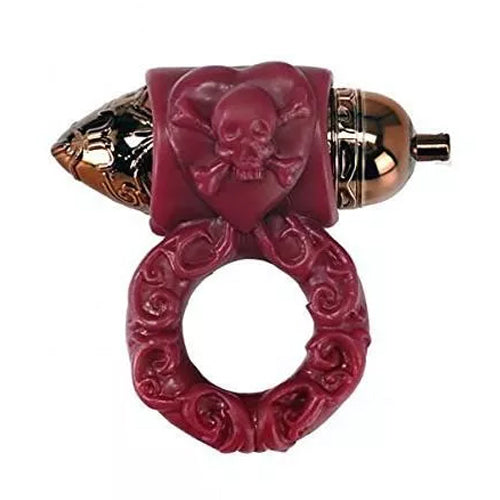 Multifunctional intense vibrating ring with skull and crossbones heart clitoral stimulator. Removable highly detailed copper bullet is sure to please you and your partner.