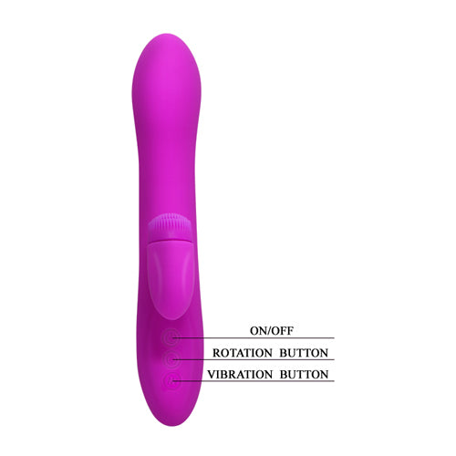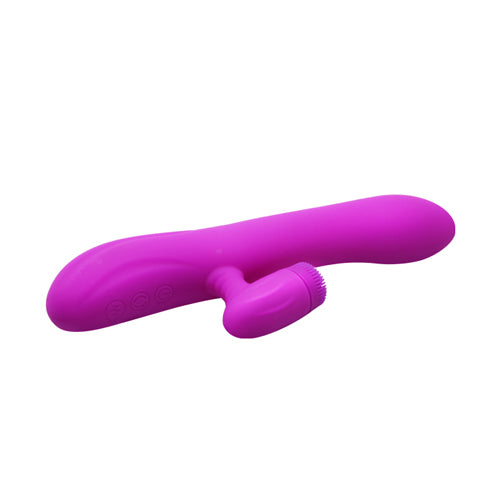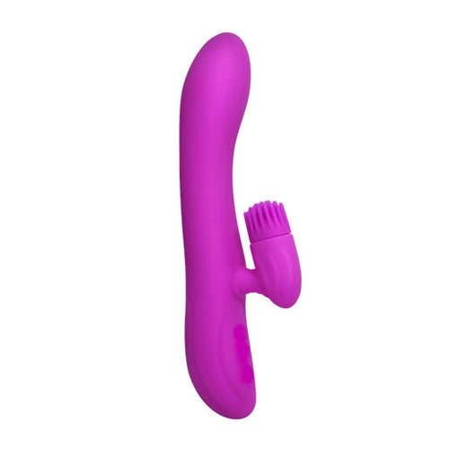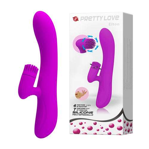 Tease your G-spot with this rotating tongue rabbit vibrator. Silky lifelike material envelopes the vibrator for a soft and sensual stimulation. The 7 functions of vibration will take you into a world of undeniable satisfaction.This vibrator has a unique rotating stimulator that will tickle your clitoris, slowly or intensely, whichever you desire with 7 different patterns. The contours of your vibrator have been lovingly crafted to target your G-spot and tip you over the edge every time.