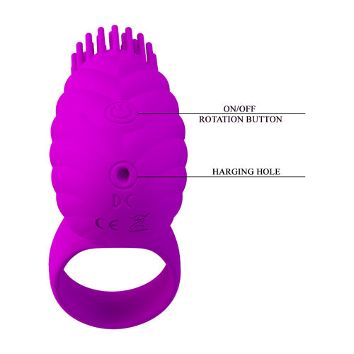 This unique cock ring is a fan favorite spinning toy with a larger comfort-fit ring and a super-powered 3 rotation functions, enhanced with soft, flexible and elongated stimulating silicone clitoral brush!Made of body-safe silicone, this toy transfers vibrations all the way to the tips for a pleasant tickling sensation that helps heighten arousal and makes orgasms come easier during intercourse, all while keeping the cock erect.