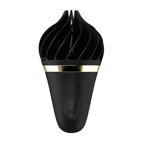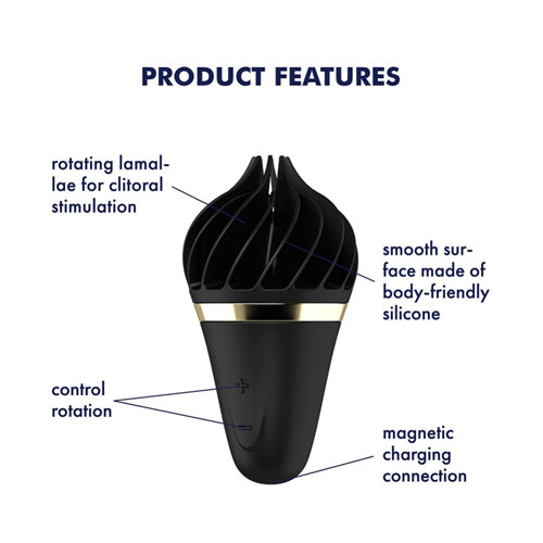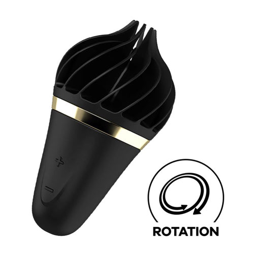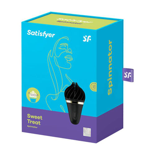 Pleasure yourself with a completely new sensation. Rotating soft silicone ribs arouse the clitoris with delicate yet firm intensity. Use this tender treat with your favorite lubricant and settle into a stimulating journey of ecstasy.The Satisfyer Sweet Treat is probably the sweetest of all clit vibrators - because this ice cream cone has it all: It brings your clitoris to super sweet climaxes like never before with the rotating fins. Pleasantly soft, skin-friendly silicone nestles around your pleasure pearl and takes care of your sexual wellness with powerful devotion, no matter where you are. The seductive cone fits comfortably in your hand - so you can easily control the 10 exciting vibration levels, consisting of 4 rotation rhythms and 3 right and left speeds each, using the /- buttons.